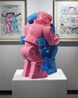 This interpretation of Mattel icon toy, in contrast to their classic Rock 'Em Sock 'Em Robots, where the figures are locked in combat,  reimagines them embracing one another, a powerful symbol of reconciliation. By depicting the characters coming together in a hug, the artwork conveys a profound message: love is the only thing that truly matters if we want to live in a better world.